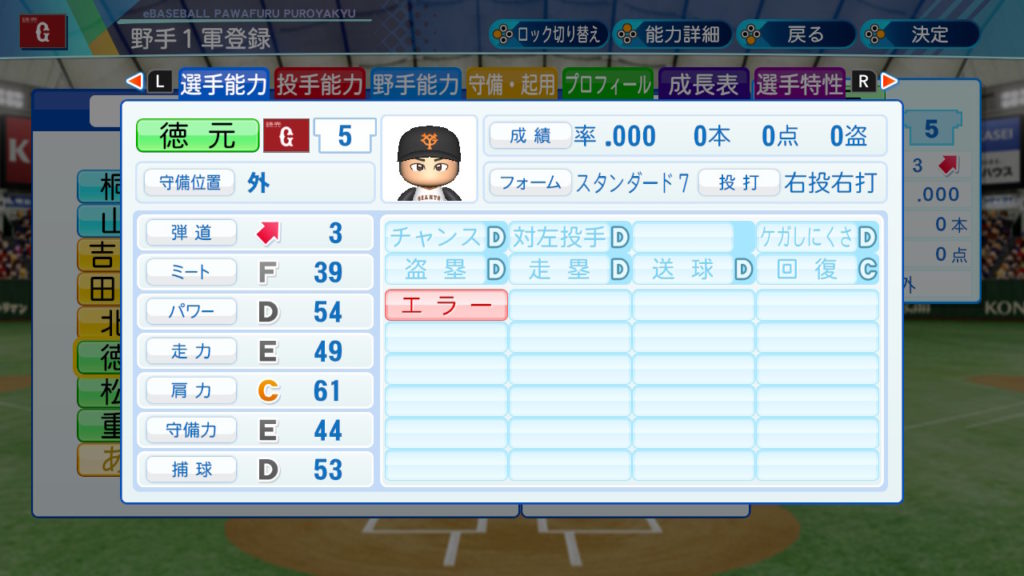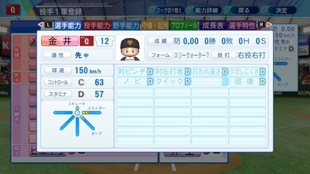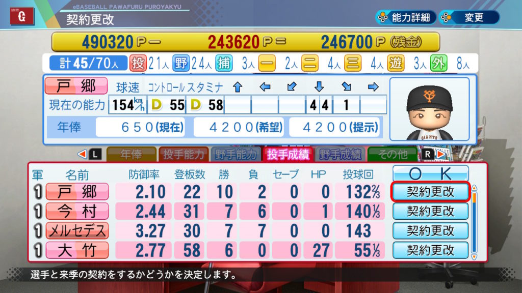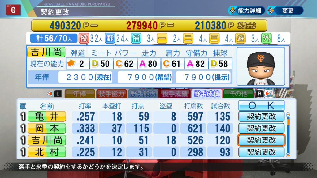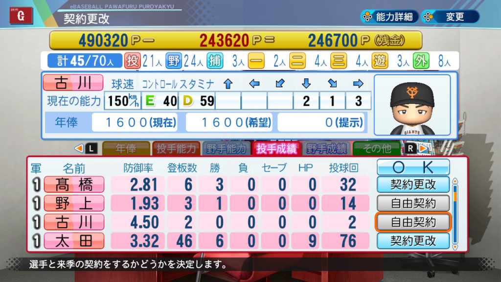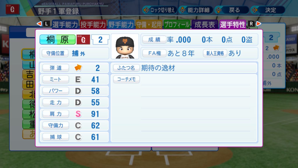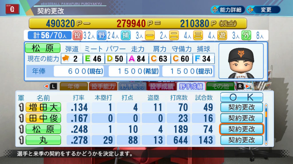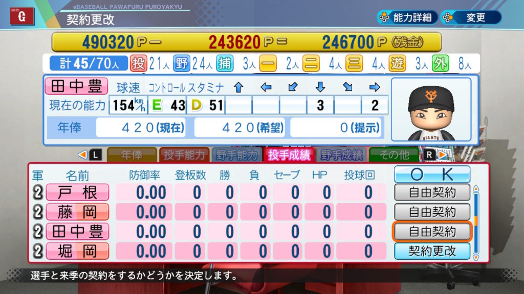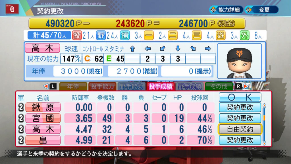 中島さんに代わるファーストを捜索するもいなかったので仕方なく唯一のBランク外国人を獲得。
