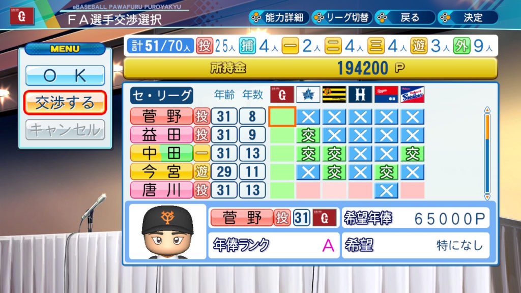 一応15日に一回トレード、新外国人、ドラフト候補の確認は行っています